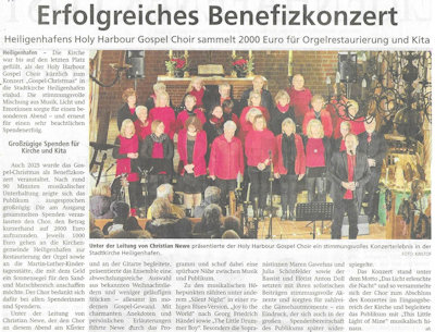 Erfolgreiches Benefizkonzert - Konzertrezension in der Heiligenhafener Post über unser Gospel-Christmas 2025