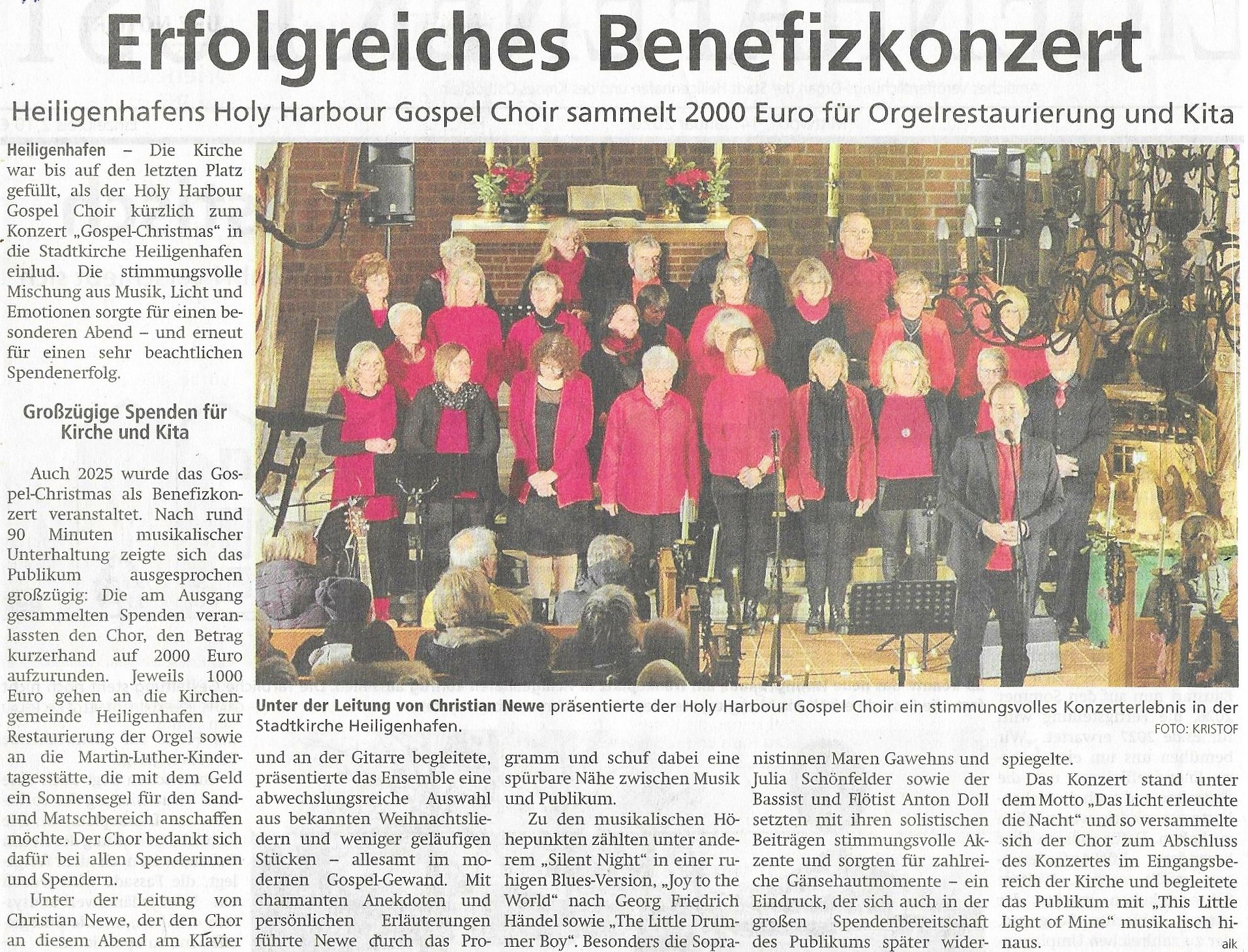 Erfolgreiches Benefizkonzert - Konzertrezension in der Heiligenhafener Post über unser Gospel-Christmas 2025