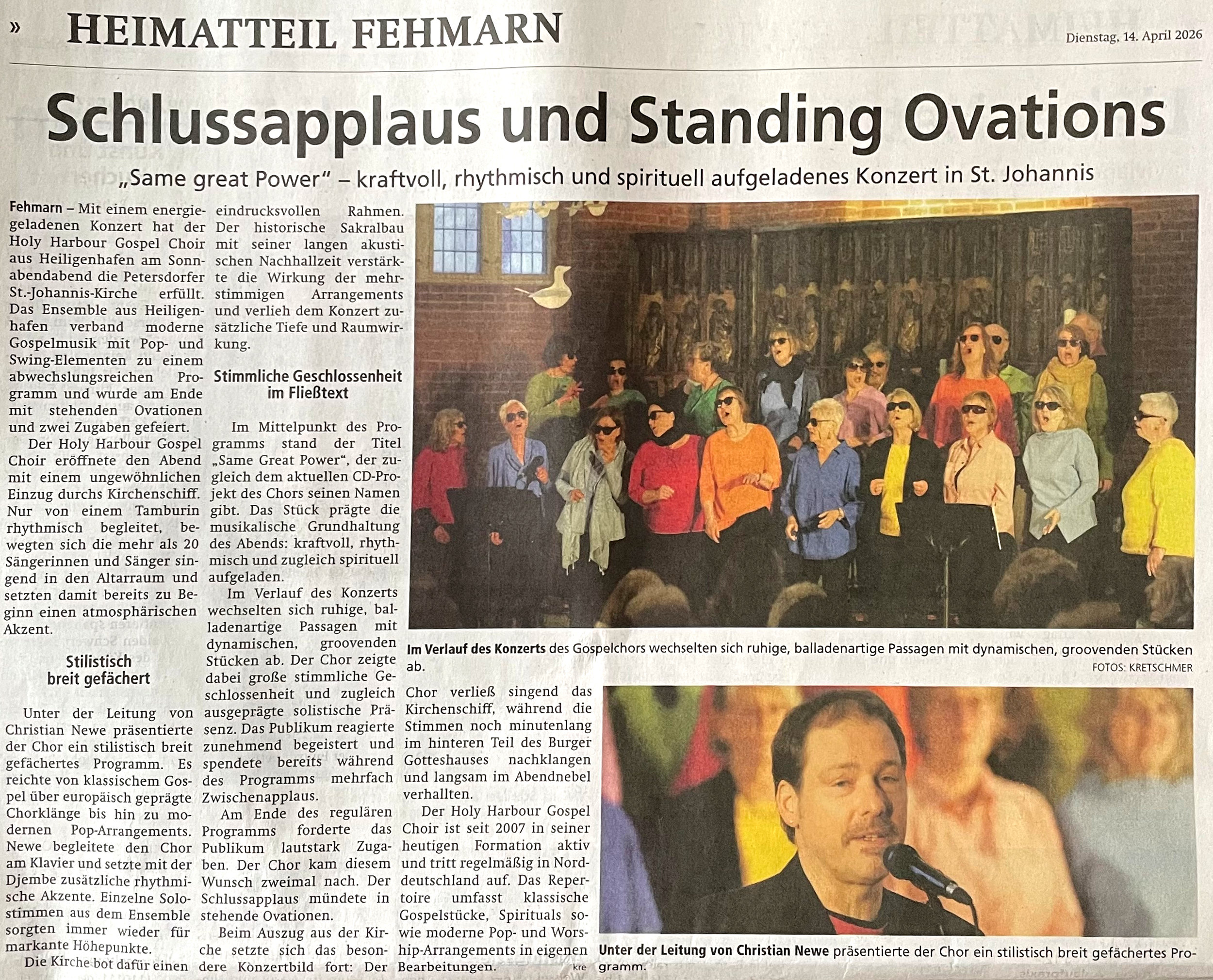 Erfolgreiches Benefizkonzert - Konzertrezension in der Heiligenhafener Post über unser Gospel-Christmas 2025